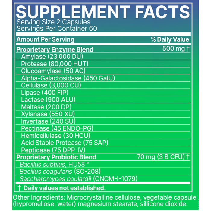 14 enzymes for broad-spectrum digestive support.