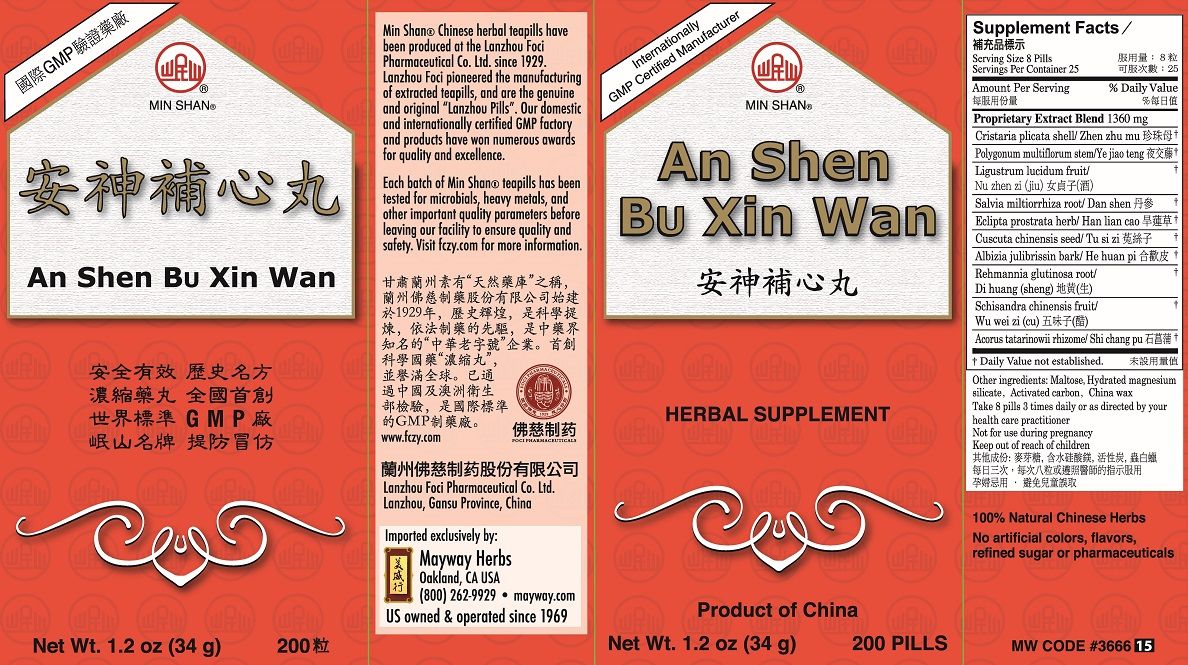 An Shen Bu Xin Wan (200 Pills)
