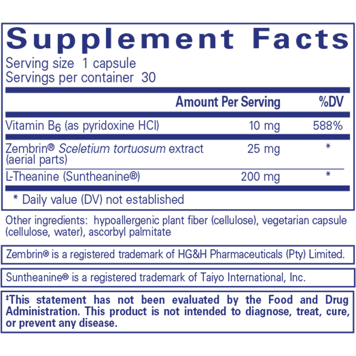 A blend of Vitamin B6, L-Theanine, and more.